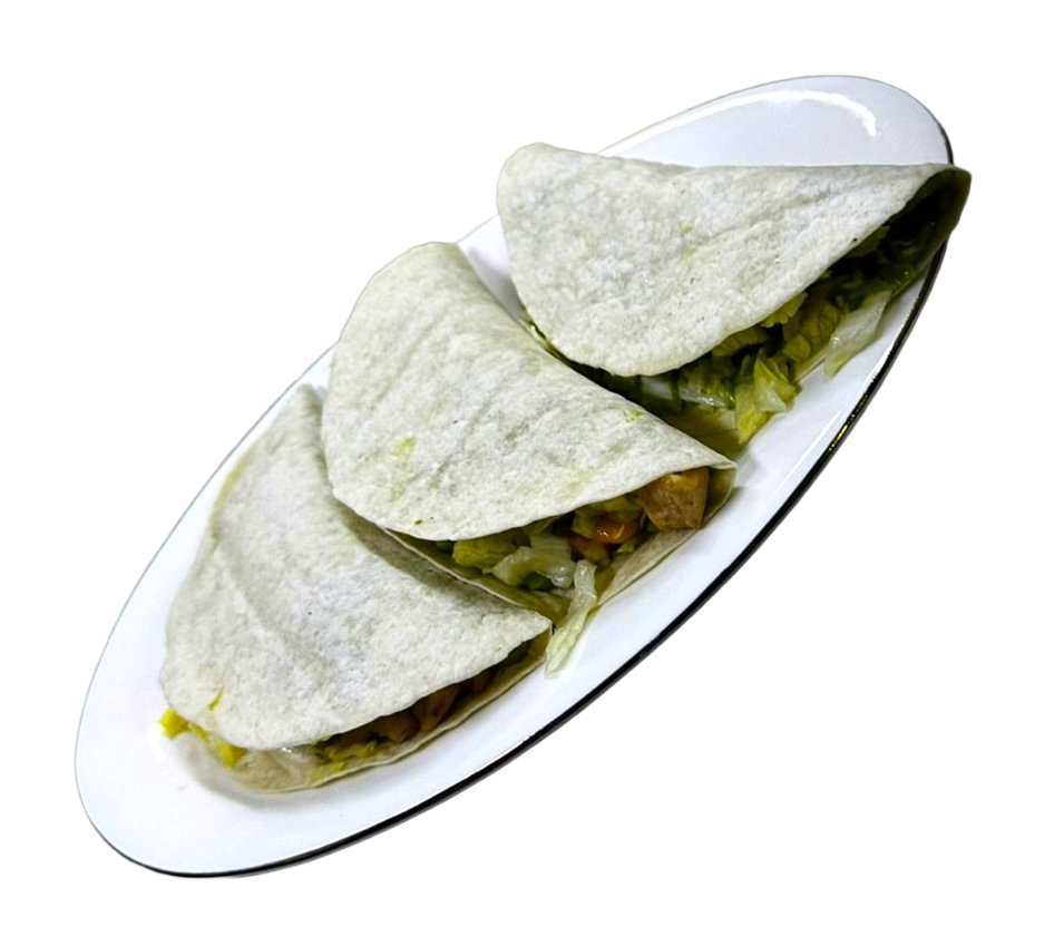 - Tres tortillas rellenas con pollo, carne de vacuno o mixtos